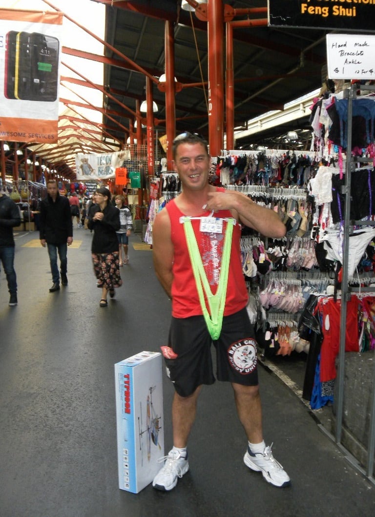 Oz working the crowd in his "Budgie Smugglers".