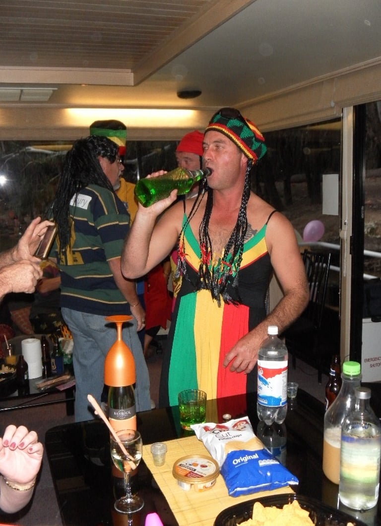 A colourful bunch at the Reggae Night on Boat 4